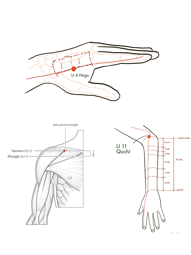 Lung 2 (LU 2) Yu Men, or the Gateway of Gathering Clouds, is where we can receive fresh sunshine, rain, and cloudy days. This point is useful for balancing energy when overwhelmed with stress, calming the body. To find LU 2, locate the area above the collarbone where it meets the shoulder blade. There should be a depression at this spot—apply pressure here to harness the balancing powers of this acupressure point.